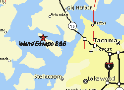 Island Escape is located within 10 minutes of picturesque Gig Harbor. The area is famous for its many commercial fishing boats. Browse among the quaint harbor shops or dine in one of the Harbor's fine restaurants. Your hosts have sample menus to help you choose a favorite. Directions